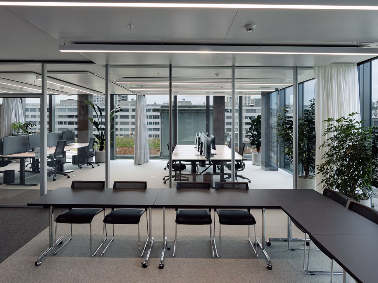 Stilvolle Grünpflanzen setzen gezielte Akzente und schaffen einen angenehmen Kontrast zur klaren Architektur.